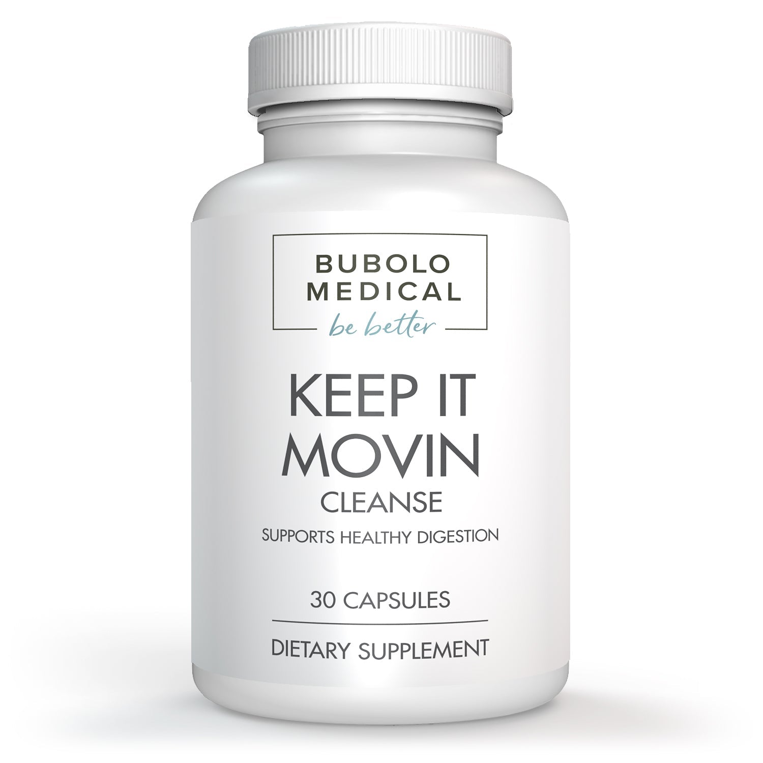 Descubra el secreto para un sistema digestivo más saludable con Keep It Movin Cleanse de Bubolo Medical. Nuestras cápsulas especialmente formuladas son la clave para promover un proceso digestivo eficiente y equilibrado, cuidadosamente diseñadas para respaldar el ritmo natural de su cuerpo.