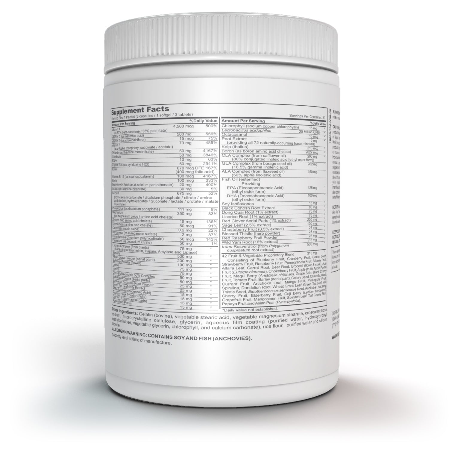 - Complejo multivitamínico completo: una sólida mezcla de vitaminas y minerales esenciales para respaldar la salud en general.